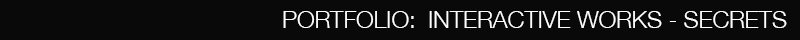 The continuing body of Secrets is shown as a single channel video, in various site-specific installations, and as photographic stills in a separate body of work. In August, 2006, as part of the Zero1 Biennial, they were installed in the San Jose Museum of Art cafe as an interactive installation. Tiny LCD monitors were hidden under salt and pepper shakers in the cafe tables and under coasters in the drink bar, so cafe and bar patrons could discover them while using the cafe. In November 2008, they again were installed in cafe tables as part of the “Girls On Film” exhibition at the Garage Biennale in San Francisco.